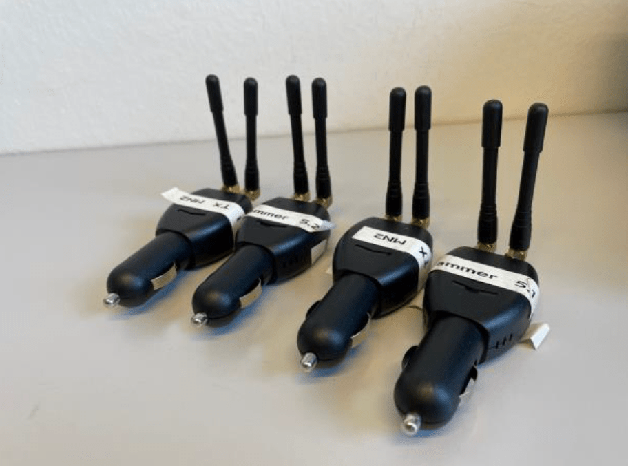 测试中使用了“香烟”干扰器,这是最常见的干扰器类型之一,且可以轻松在网上购买。它发射功率在10-15 dBm之间的信号,并干扰GPS的L1和L2信号。其他干扰测试包括信号强度高出GNSS信号1000万倍的强力干扰器。